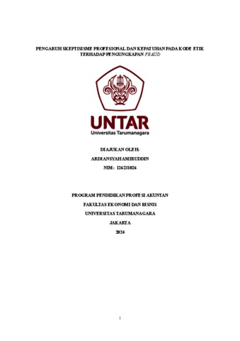 Amiruddin, Ardiansyah (2023) Pengaruh skeptisme profesional dan kepatuhan pada kode etik terhadap pengungkapan Fraud. Masters thesis, Universitas Tarumanagra.