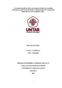 Carolina, Carolina (2023) Analisis dampak pelanggaran etika dan kode etik bagi akuntan publik: studi kasus PT Asuransi Adisarana Wanaartha life. Masters thesis, Universitas Tarumanagra.