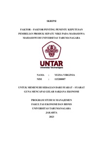 Virginia, Yezsa (2023) FAKTOR – FAKTOR PENTING PENENTU KEPUTUSAN PEMBELIAN PRODUK SEPATU NIKE PADA MAHASISWA MAHASISWI DI UNIVERSITAS TARUMANAGARA. Skripsi thesis, Universitas Tarumanagara.
