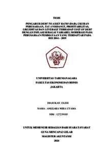 Utama, Anggara Wira (2023) Pengaruh debt to asset ratio (DAR), ukuran perusahaan, tax avoidance, profitabilitas, likuiditas dan leverage terhadap cost of debt dengan inflasi sebagai variabel moderasi pada persuahaan pembiayaaan yang terdaftar pada BEI 2014-2019. Masters thesis, Universitas Tarumanagra.