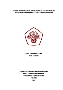 Yappy, Dominico (2023) Analisis penerapan PSAK 73 pada laporan keuangan PT ABC dalam meningkatkan relevansi laporan keuangan. Masters thesis, Universitas Tarumanagra.