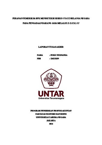 Fernanda, Feric (2023) Peranan pemeriksa BPK mendeteksi risiko fraud belanja negara pada pengadaan barang jasa melalui e-katalog. Masters thesis, Universitas Tarumanagara.