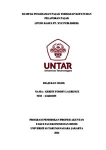 Laurence, Gerits Tommy (2023) Dampak pemahaman pajak terhadap kepatuhan pelaporan pajak (studi kasus PT. XYZ publisher). Masters thesis, Universitas Tarumanagara.