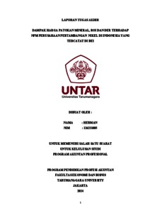 Herman, Herman (2023) Dampak harga patokan mineral, ROI dan DER terhadap NPM perusahaan pertambangan nikel di Indonesia yang tercatat di BEI. Masters thesis, Universitas Tarumanagara.