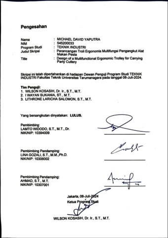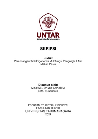 Yaputra, Michael David (2024) Perancangan troli ergonomis multifungsi pengangkut alat makan pesta (T. Ind - 872). Skripsi thesis, Universitas Tarumanagara.