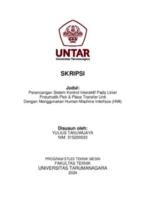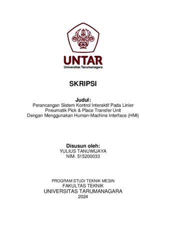 Tanuwijaya, Yulius (2024) Perancangan sistem kontrol interaktif pada linier pneumatik pick & place transfer unit dengan menggunakan human-machine interface (hmi) (TM - 1359). Skripsi thesis, Universitas Tarumanagara.