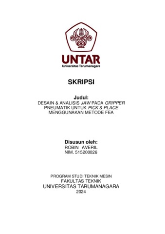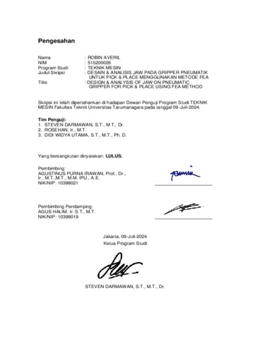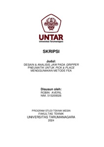 Averil, Robin (2024) Desain & analisis jaw pada gripper pneumatik untuk pick & place menggunakan metode fea (TM - 1362). Skripsi thesis, Universitas Tarumanagara.