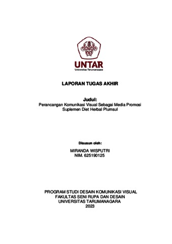 Wisputri, Miranda (2023) Perancangan komunikasi visual sebagai media promosi suplemen diet herbal Plumsul (DKV - 3030). Skripsi thesis, Universitas Tarumanagara.