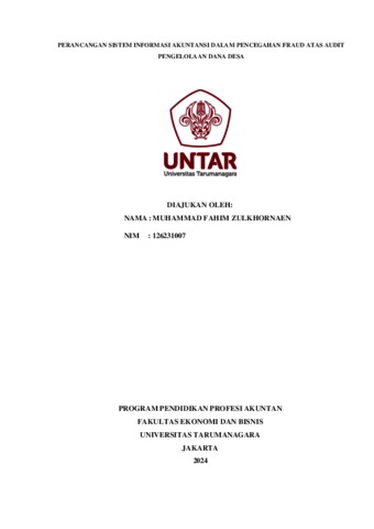 Zulkhornaen, Muhammad Fahim (2023) Perancangan sistem informasi akuntansi dalam pencegahan fraud atas audit pengelolaan dana desa. Masters thesis, Universitas Tarumanagara.