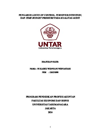 Widyastari, Ni Kadek Widyani Widyastari (2023) Pengaruh locus of control, turnover intetion, dan time budget pressure pada kualitas audit. Masters thesis, Universitas Tarumanagara.