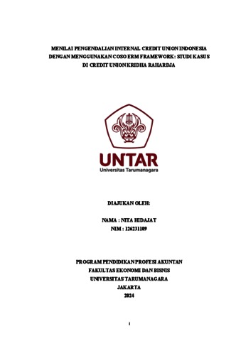 Hidayat, Nita (2023) Menilai pengendalian internal credit union Indonesia dengan menggunakan COSO ERM FRAMEWORK: studi kasus di credit union kridha rahardja. Masters thesis, Universitas Tarumanagara.