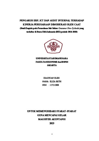 Kata Kunci: ERP, ICT, Audit Internal, Kinerja Perusahaan, CAAT, Konsumen Non-Siklus, dan Bursa Efek Indonesia (BEI)