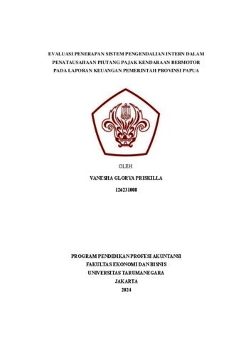 Priskilla, Vanesha Glorya (2023) Evaluasi penerapan sistem pengendalian intern dalam penatausahaan piutang pajak kendaraan bermotor pada laporan keuangan Pemerintah Provinsi Papua. Masters thesis, Universitas Tarumanagara.