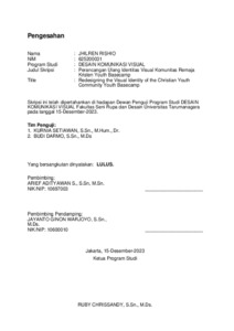 Rishio, Jhilren (2024) Perancangan ulang identitas visual komunitas remaja Kristen Youth Basecamp (DKV - 3031). Skripsi thesis, Universitas Tarumanagara.