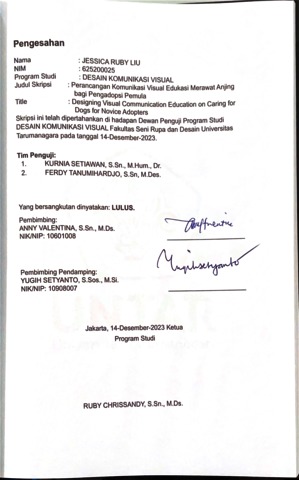 Liu, Jessica Ruby (2024) Perancangan komunikasi visual edukasi merawat anjing bagi pengadopsi pemula (DKV - 3046). Skripsi thesis, Universitas Tarumanagara.