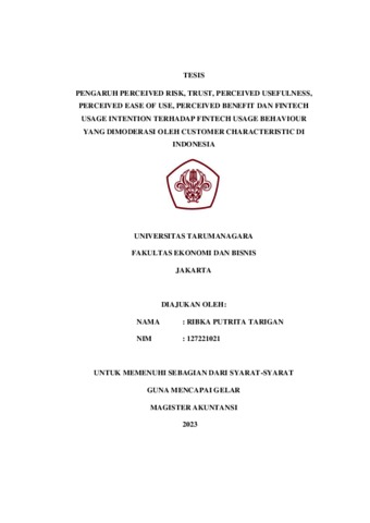 Tarigan, Ribka Putrita (2023) Pengaruh Perceived Risk, Trust, Perceived Usefulnes Perceived Ease Of Use, Perceived Benefit dan Fintech Usage Intention Terhadap Fintech Usage Behaviour yang dimoderasi oleh Customer Characteristic di Indonesia. Masters thesis, Universitas Tarumanagara.