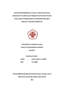Amini, Santi Amalya (2023) Pengaruh Pemeriksaan Pajak, Sanksi Pajak dan Kesadaran Wajib Pajak Terhadap Kepatuhan Wajib Pajak Orang Pribadi dengan Preferensi Risiko Sebagai Variabel Moderasi. Masters thesis, Universitas Tarumanagara.