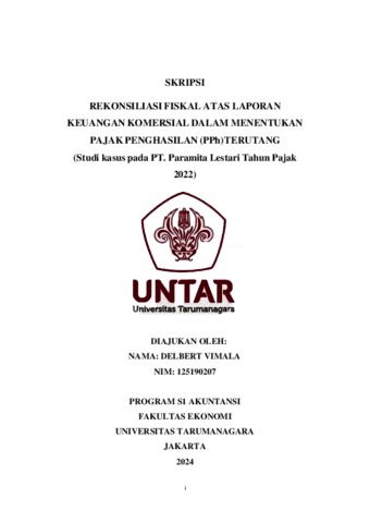 Vimala, Delbert (2023) REKONSILIASI FISKAL ATAS LAPORAN KEUANGAN KOMERSIAL DALAM MENENTUKAN PAJAK PENGHASILAN (PPh) TERUTANG (Studi kasus pada PT. Paramita Lestari Tahun Pajak 2022). Skripsi thesis, Universitas Tarumanagara.
