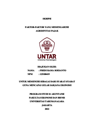Soesanto, Fredi Rama (2023) FAKTOR-FAKTOR YANG MEMENGARUHI AGRESIVITAS PAJAK. Skripsi thesis, Universitas Tarumanagara.