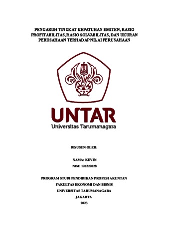 Kevin, Kevin (2023) Pengaruh Tingkat Kepatuhan Emiten, Rasio Profitabilitas, Rasio Solvabilitas, dan Ukuran Perusahaan Terhadap Nilai Perusahaan. Other thesis, Universitas Tarumanagara.