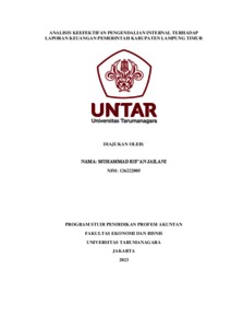 Jailani, Muhammad Rif'an (2023) Analisis Keefektifan Pengendalian Internal Terhadap Laporan Keuangan Pemerintahan Kabupaten Lampung Timur. Other thesis, Universitas Tarumanagara.