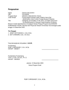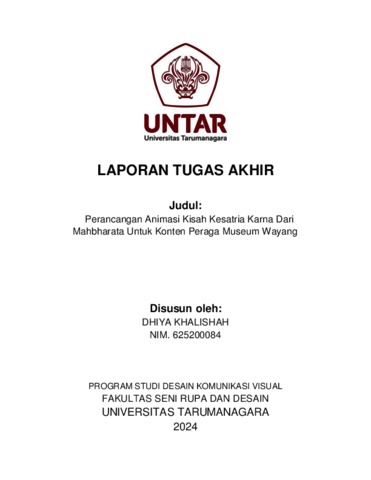 Khalishah, Dhiya (2024) Perancangan animasi kisah kesatria karna dari Mahbhrata untuk konten peraga Museum Wayang (DKV - 3066). Skripsi thesis, Universitas Tarumanagara.