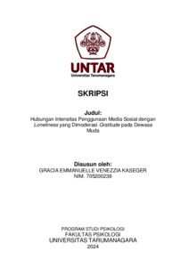 Kaseger, Gracia Emmanuelle Venezzia (2024) Hubungan Intensitas Penggunaan Media Sosial dengan Loneliness yang Dimoderasi Gratitude pada Dewasa Muda. Skripsi thesis, Universitas Tarumanagara.
