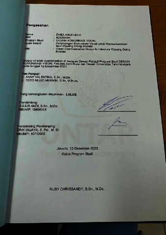 Angelique, Dhea (2024) Perancangan komunikasi visual untuk memperkenalkan seni wayang orang Bharata (DKV - 3083). Skripsi thesis, Universitas Tarumanagara.