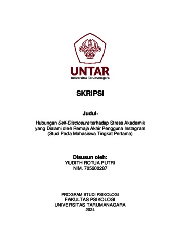 Putri, Yudith Rotua (2024) Hubungan Self-disclosure Terhadap Stres Akademik yang dialami oleh Remaja Akhir Pengguna Instagram (Studi pada Mahasiswa Tingkat Pertama). Skripsi thesis, Universitas Tarumanagara.