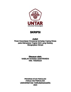 Giartriweni, Nabilah Khansa (2024) Peran Kecerdasan Emosional terhadap Coping Stress pada Mahasiswa Tingkat Akhir yang Sedang Mengerjakan Skripsi. Skripsi thesis, Universitas Tarumanagara.