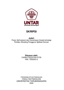 Fitri, Farah Fauziyah (2024) Peran Self-esteem dan Kecemasan Sosial Terhadap Perilaku Ghosting Pengguna Aplikasi Kencan. Skripsi thesis, Universitas Tarumanagara.
