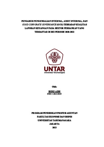 Azri, Rizki (2023) Pengaruh Pengendalian Internal, Audit Internal, dan Good Corporate Governance (GCG) Laporan Keuangan Pada Sektor Perbankan Yang Terdaftar di BEI Periode 2020-2022. Other thesis, Universitas Tarumanagara.