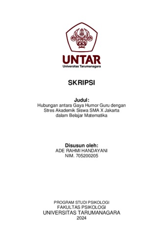 Handayani, Ade Rahmi (2024) Hubungan antara Gaya Humor Guru dengan Stres Akademik Siswa SMA X Jakarta dalam Belajar Matematika. Skripsi thesis, Universitas Tarumanagara.