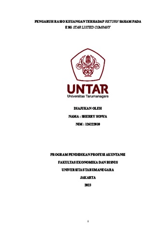 Sonya, Sherry (2023) Pengaruh Rasio Keuangan Terhadap Return Saham pada ESG Star Listed Company. Other thesis, Universitas Tarumanagara.
