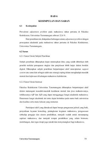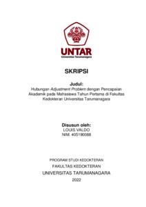 VALDO, LOUIS (2022) Hubungan Adjustment Problem dengan Pencapaian Akademik pada Mahasiswa Tahun Pertama di Fakultas Kedokteran Universitas Tarumanagara. Skripsi thesis, Universitas Tarumanagara.