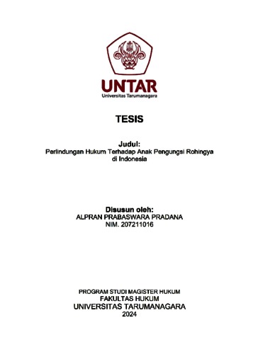 Pradana, Alpran Prabaswara (2024) Perlindungan Hukum Terhadap Anak Pengungsi Rohingya di Indonesia. Masters thesis, Universitas Tarumanagara.