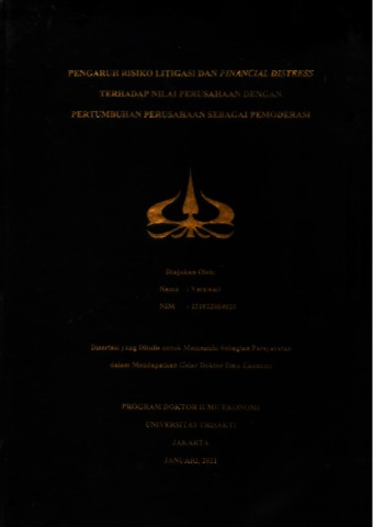 Verawati, Disertasi (2021) Pengaruh Resiko litigasi dan financial Distress terhadap nilai perusahaan dengan pertumbuhan perusahaan sebagai pemoderasi. Doctoral thesis, Universitas Tarumanagara.