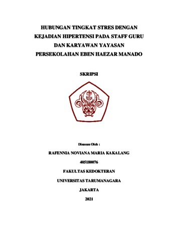 KAKALANG, RAFENNIA NOVIANA MARIA (2021) HUBUNGAN TINGKAT STRES DENGAN KEJADIAN HIPERTENSI PADA STAFF GURU DAN KARYAWAN YAYASAN PERSEKOLAHAN EBEN HAEZAR MANADO. Skripsi thesis, Universitas Tarumanagara.