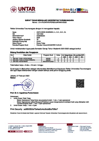 Kolopaking, .Anitia, Dewi Anggraeni Surat Tugas Nomor: 514-R/UNTAR/PENGAJARAN/II/2022. Universitas Tarumanagara.