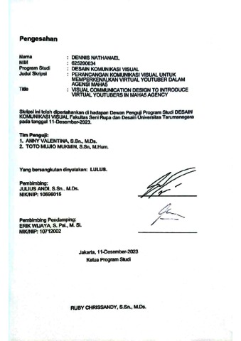 Nathanael, Dennis (2024) Perancangan komunikasi visual untuk memperkenalkan virtual Youtuber dalam agensi Maha5 (DKV - 3086). Skripsi thesis, Universitas Tarumanagara.
