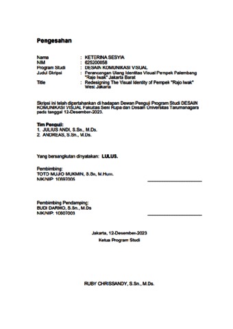 Sesyia, Keterina (2024) Perancangan ulang identitas visual Pempek Palembang "Rajo Iwak" Jakarta Barat (DKV - 3092). Skripsi thesis, Universitas Tarumanagara.