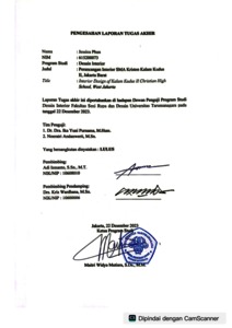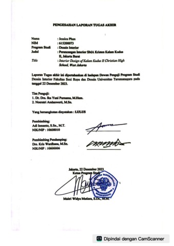 Phan, Jessica (2023) Perancangan interior SMA Kristen Kalam Kudus II, Jakarta Barat (DI - 2496). Skripsi thesis, Universitas Tarumanagara.