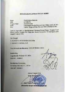 Hartanto, David Joshua (2023) Perancangan interior hotel Horison Ultima Seminyak, Bali (DI - 2502). Skripsi thesis, Universitas Tarumanagara.