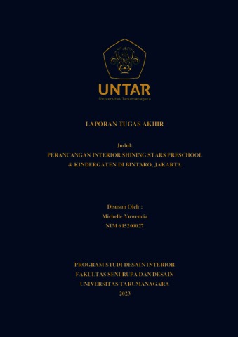 Yuwencia, Michelle (2023) Perancangan interior Shining Stars Preschool & Kindergarten di Bintaro, Jakarta (DI - 2503). Skripsi thesis, Universitas Tarumanagara.