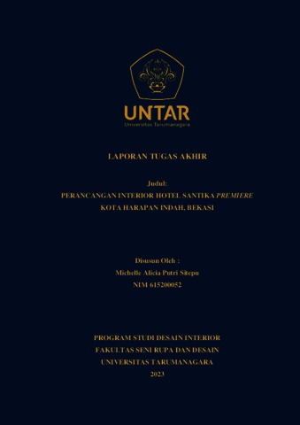 Sitepu, Michelle Alicia Putri (2023) Perancangan interior Hotel Santika Premiere Kota Harapan Indah Bekasi (DI - 2518). Skripsi thesis, Universitas Tarumanagara.