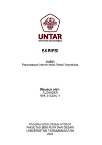 Alcander, Alcander (2023) Perancangan interior Hotel Artotel Yogyakarta (DI - 2521). Skripsi thesis, Universitas Tarumanagara.