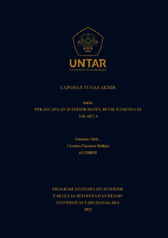 Bellina, Clarissa Florence (2023) Perancangan interior Hotel Butik Kosenda di Jakarta (DI - 2526). Skripsi thesis, Universitas Tarumanagara.