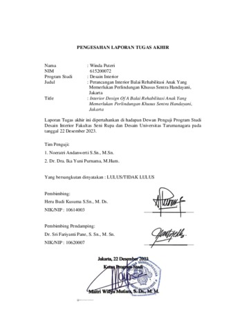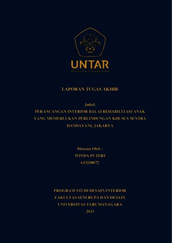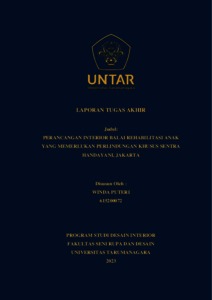 Puteri, Winda (2023) Perancangan interior balai rehabilitasi anak yang memerlukan perlindungan khusus Sentra Handayani, Jakarta (DI - 2527). Skripsi thesis, Universitas Tarumanagara.