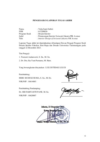 Safitri, Yulia Santi (2023) Perancangan interior Swissotel Jakarta PIK Avenue (DI - 2528). Skripsi thesis, Universitas Tarumanagara.
