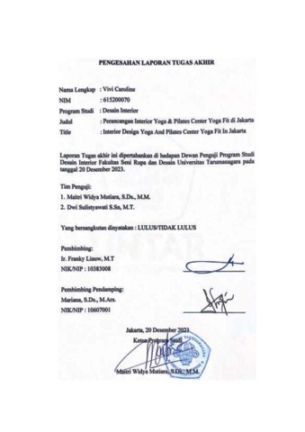 Caroline, Vivi (2023) Perancangan interior Yoga & Pilates Center Yoga Fit di Jakarta (DI - 2533). Skripsi thesis, Universitas Tarumanagara.